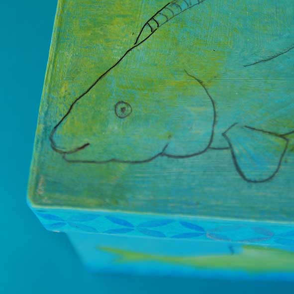 Die Schachtel ist auf jeden Fall sehr schön geworden, und ich finde, da könnten Sie noch welche folgen lassen – mit oder ohne Fisch – und die Farbe gefällt mir auch sehr gut.