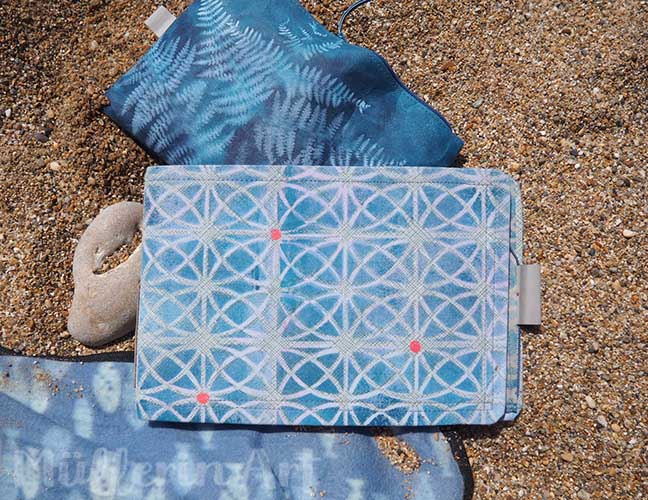 Meine Reisebuch-Leidenschaft ist ja mitterweile bekannt. Seit vielen Jahren schreibe, zeichne und klebe ich im Urlaub täglich und sehr intensiv. In den letzten Jahren waren es immer Ringbücher im Din A5 Format, sehr praktisch, aber dieses Jahr wollte ich mal etwas Neues ausprobieren. Unter den Namen „Fauxdori“ oder „Travelers Notebook“ sieht man diese Art von Büchern überall im Netz. Textile oder lederne Umschläge, in die mit Hilfe von Gummibändern einzelne Hefte eingehängt werden. Sowas wollte ich diesmal auch, ähnliche sind auch schon im „Textile Bücher“-Workshop im März entstanden, aber jetzt sollte es angepasst sein auf mein Lieblings-Reise-Format A5 quer. Für einen dreiwöchigen Urlaub drei Hefte, herausnehmbar, so dass ich nicht immer alles mitschleppen muss.