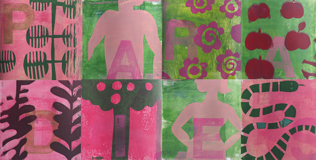 Hier alle Buchstaben und Motive des Paradieses in der Übersicht, mit Platz für eigene Interpretationen.