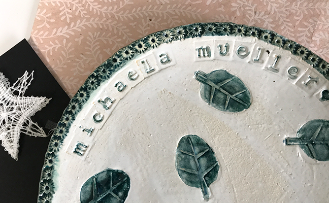 Gleichzeitig sage ich heute Danke! Für all die wunderbaren Begegnungen, die geballte Kreativität in den Workshops, die vielen vielen positiven Rückmeldungen, die in diesen Tagen auch wieder per Post bei mir ankommen. Unglaublich schöne Post habe ich in den letzten Tagen bekommen, ich kann sie gar nicht alle zeigen. Nur diesen handgetöpferten Teller von Mareile, ist der nicht unglaublich?