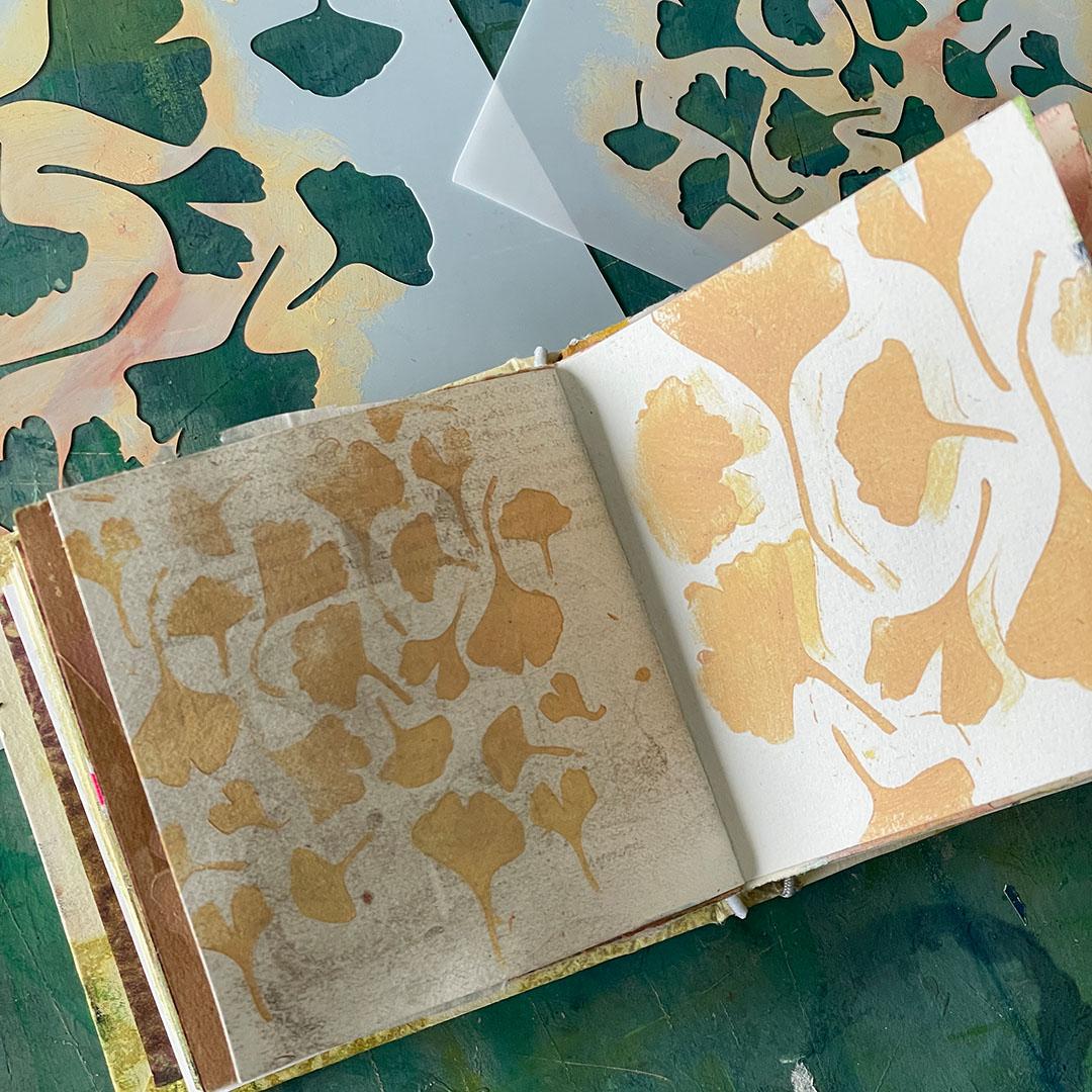 In meinem digitalen Fundus fanden sich Blätterschablonenmuster aus dem letzten Jahr, die ich noch die geplottet oder gedruckt hatte. Jetzt ist es Zeit dafür. Vielleicht schaffe ich auch noch in diesen Herbstwochen ein neues Blätter-Schablonen-Set zum Download, bevor die Saison vorbei ist. Auf jeden Fall werden diese und andere Blätterschablonen am kommenden Wochenende beim Herbstbücher-Workshop zum Einsatz kommen.