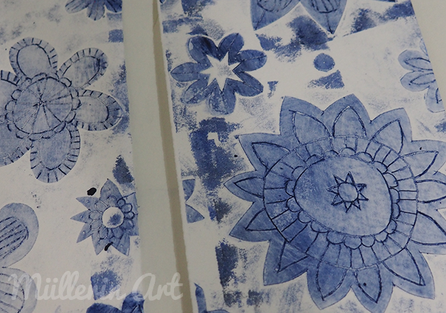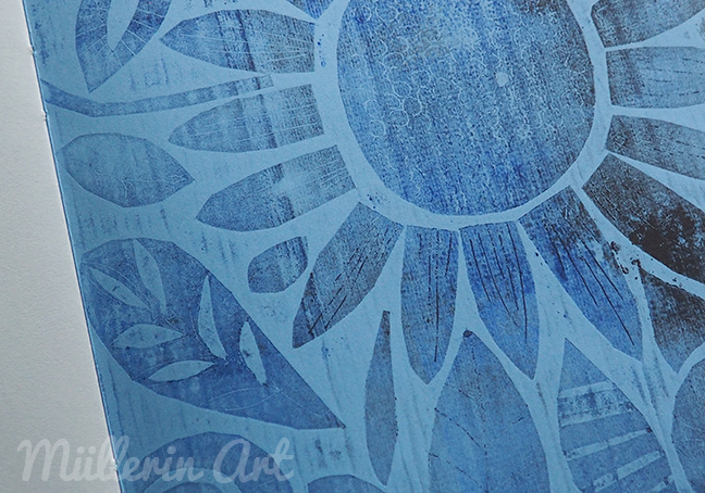 Jeder Druck wird anders und Versuche auf trockenem farbigen Papier haben auch ihren Reiz.