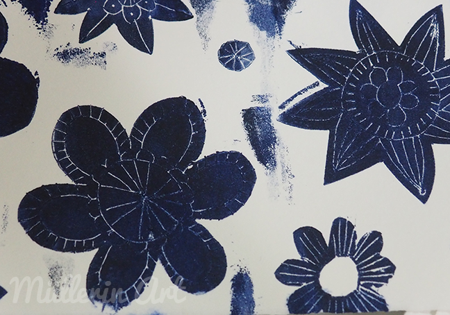 Annette hat sich anstecken lassen von meinen Versuchen, zarte Blümchen geritzt und gedruckt, bis das Papier zur Neige ging.