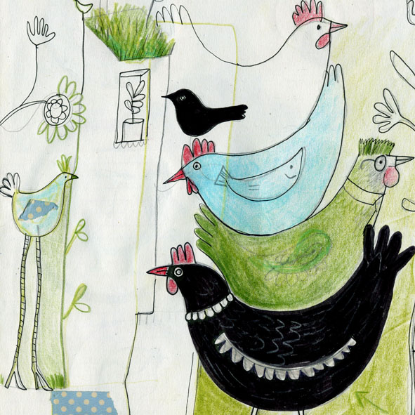 das um unser Haus gackerte und pickte, ist ein halbes Heft voller Hühner entstanden.