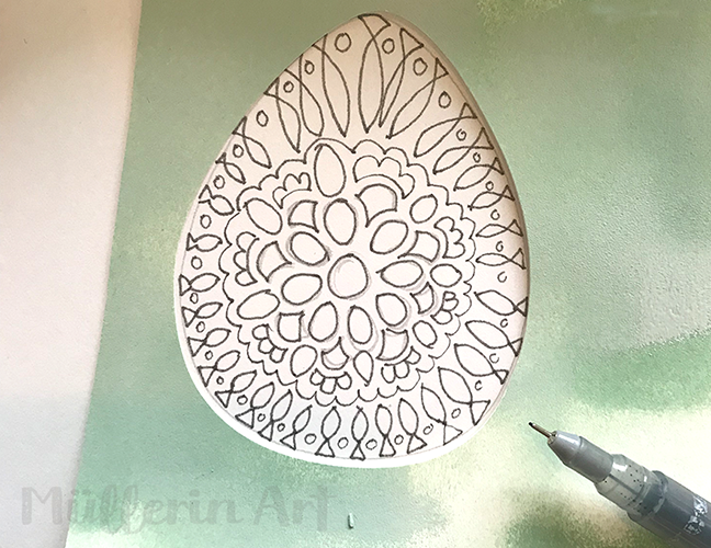 Streublümcheneier. Das lies sich schön mandala-artig mit Eier und Fischen füllen, passend zur Insel.