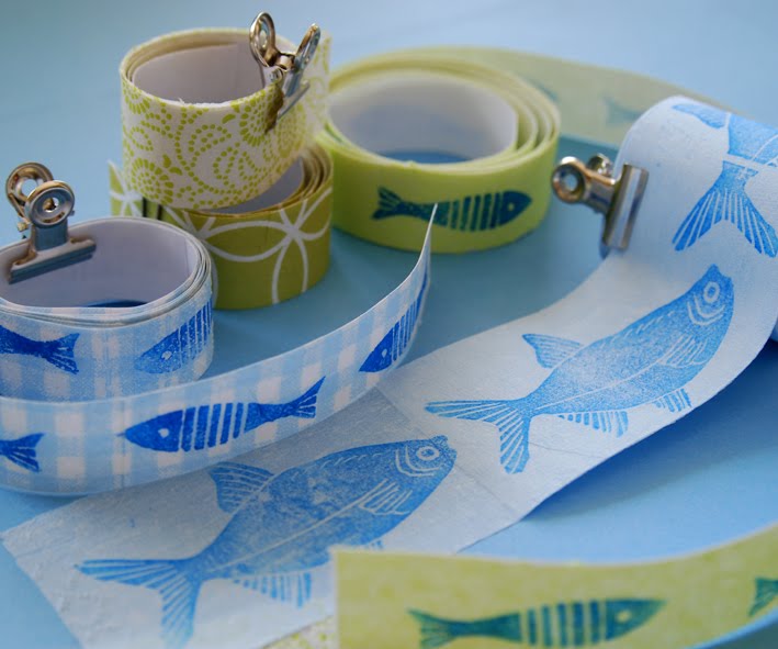Der Klebeband-Wahn hält an. Die Vorräte an doppelseitigem Klebeband sind aufgefüllt, und ich habe mit Servietten und Stempeln experimentiert. Auf Papierservietten kann man wunderbar stempeln, nur die obere Schicht abziehen und auf das Klebeband aufbringen. Dadurch wird der Streifen leicht transparent und ganz dünn.