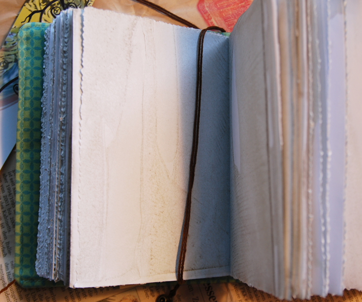 Besonders schön finde ich die lebendigen Innenseiten, die gerissene Kanten und eine leichte, auf jeder Seite unterschiedliche, Grundierung haben. Die kann einem auch die Angst vor dem weißen Blatt nehmen. Bisher habe ich mich aber dennoch nicht getraut, reinzuzeichnen. Wenn ich es wage, zeige ich es!