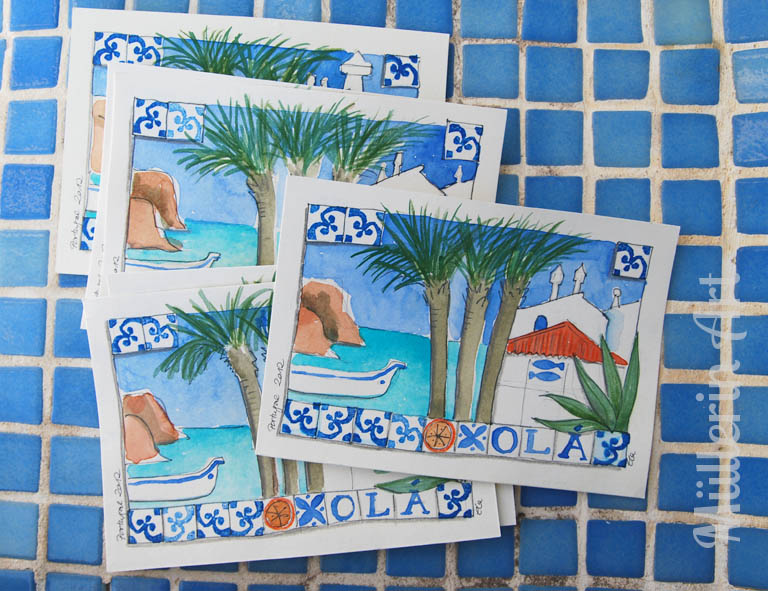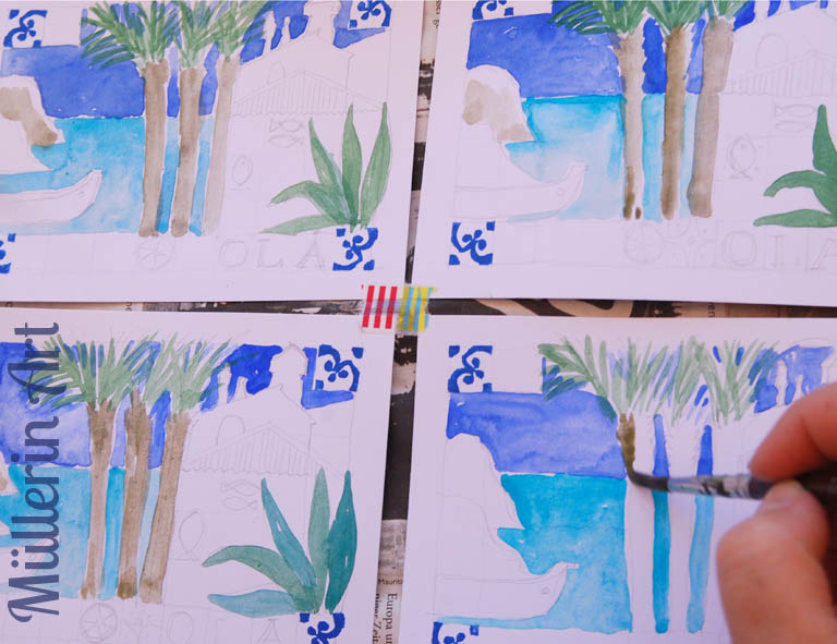 Die kleine handgemalte Postkarten-Edition für Familie und Freunde ist im Schatten entstanden.