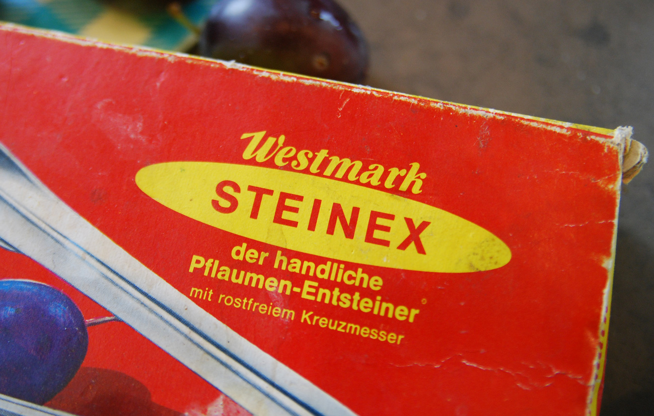 Wie cool ein Pflaumenentsteiner – früher hatten wir sowas für Kirschen. Ich erinnere mich noch wie alles rot besrenkelt war danach…