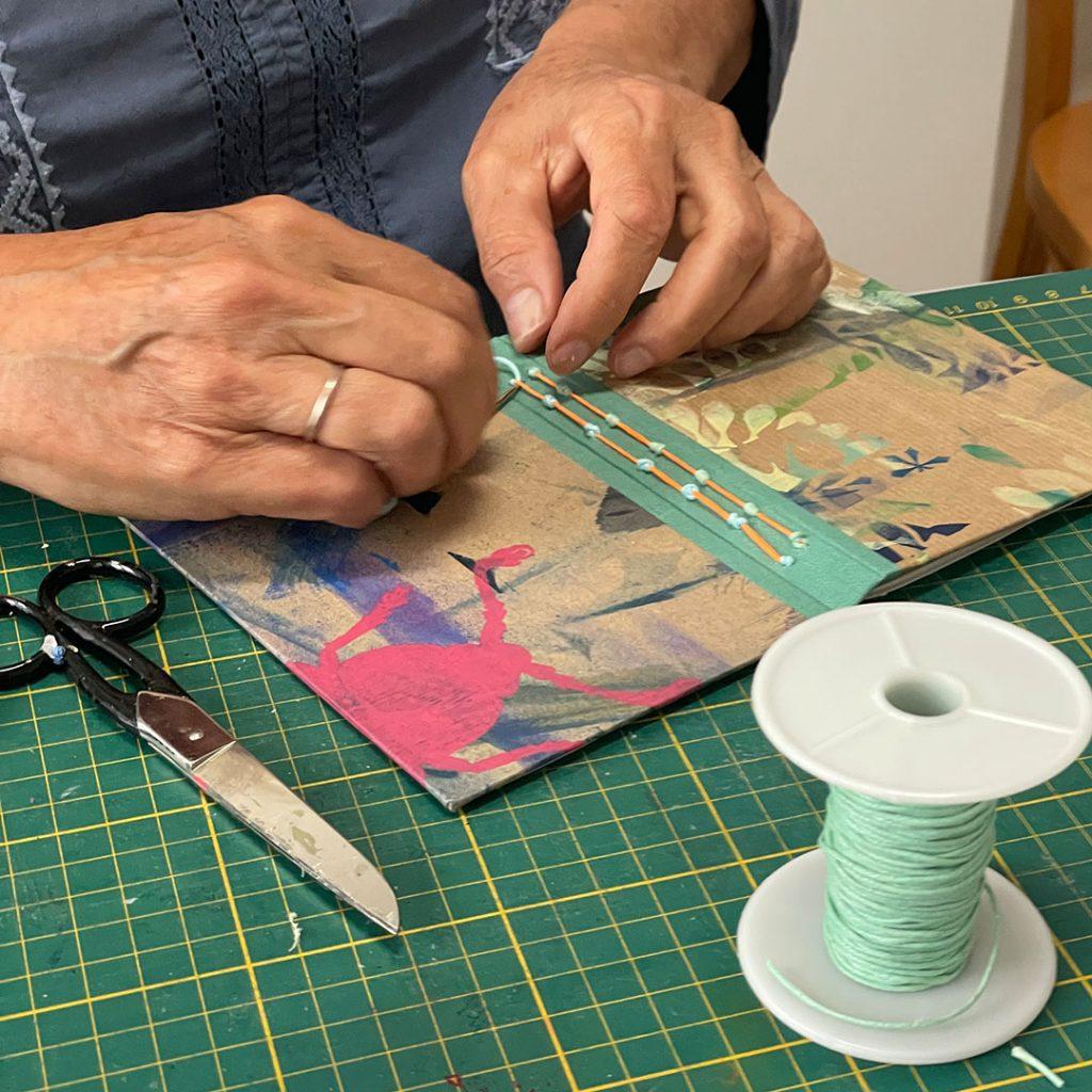 Hast du noch nie ein Heft geheftet? Ich zeige dir an diesem Nachmittag einen schnellen Start ins Buchbinden mit Papier, Nadel und Faden. Wir starten mit einfachen Heften mit dekorativen Stichen und binden kleine einfache Bücher. Es wird ein Start ins Buchbinden ohne Leim und ohne lange Trocknungszeiten. Es entstehen Notiz- oder Skizzenhefte, kleine Artjournals oder Tagebücher. Ich zeige euch meine liebsten Gummibandbücher, die maximale Flexibilität bieten. Dabei kommen meine handbedruckten Papiere zum Einsatz oder du bringst deine eigenen Papiere mit, die du schon immer verarbeiten wolltest.