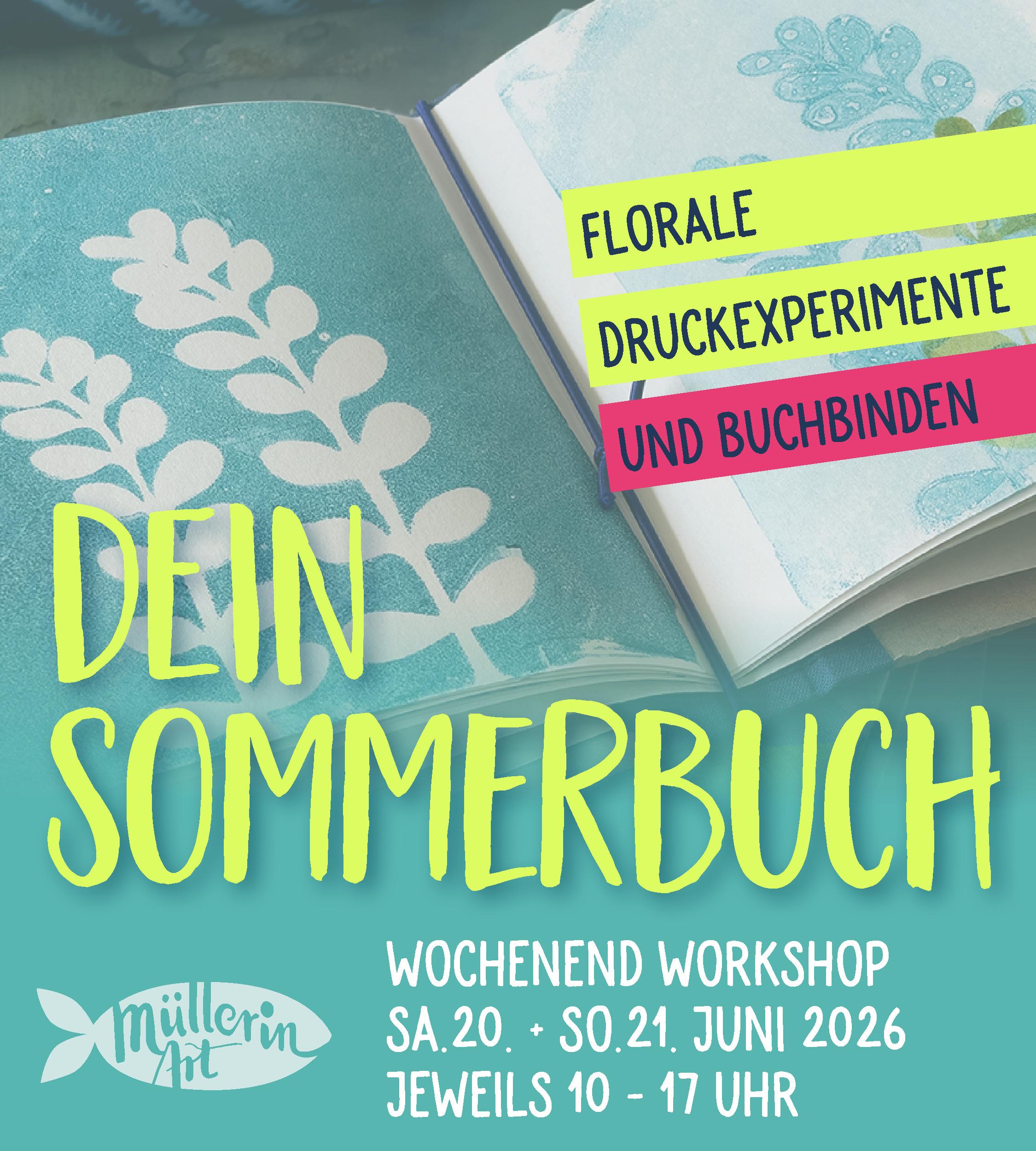 Im Sommer blüht und wächst es, wir halten die sommerliche Pracht fest und sammeln unsere Drucke in  einem Mixed-Media-Artjournal. Das ganz besondere Buch binden wir am zweiten Tag und können es durch Collagen, Zeichnungen und Texte ergänzen.