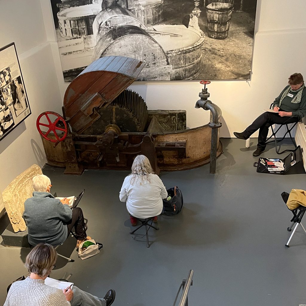 Wenn vorhanden, bringt einen kleinen Klapphocker mit. Es gibt hier und da Sitzgelegenheiten auf dem Gelände, aber vielleicht nicht immer da, wo die besten Blicke auf die schönsten Ecken sind. Je nach Wetter bleiben wir auf dem Außengelände oder können den Innenräume des Museums zeichnen. Der  Museumseintritt ist nicht in der Kursgebühr enthalten und wird dann ggf. eingesammelt.