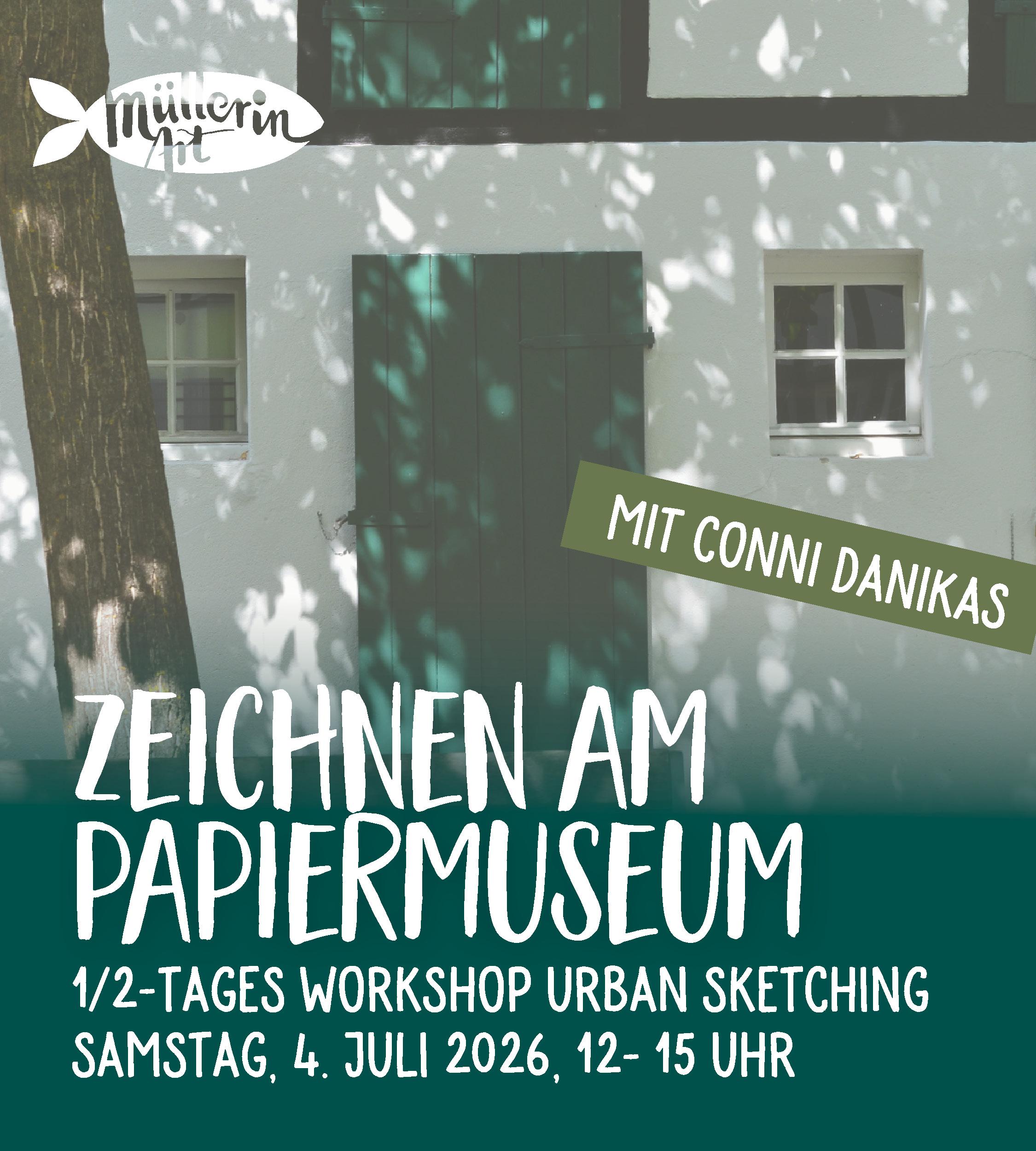 Im Juli zeichnen wir wieder gemeinsam und gehen diesmal an den Ort in Bergisch Gladbach, wo die Papierherstellung begann. Dort gibt es und zwischen den alten Fachwerkhäusern und Papiermaschinen eine Menge toller Motive, auch ein Besuch im Museum ist möglich. Wir werden wieder kleine Faltbücher aus Original-Zanders-Papier falten und grundieren und gemeinsam die Seiten füllen. Conni und ich nehmen dir die Angst vorm Zeichnen vor Ort. Wir zeigen dir Tricks und Techniken, Architektur und Details aufs Papier zu bringen.