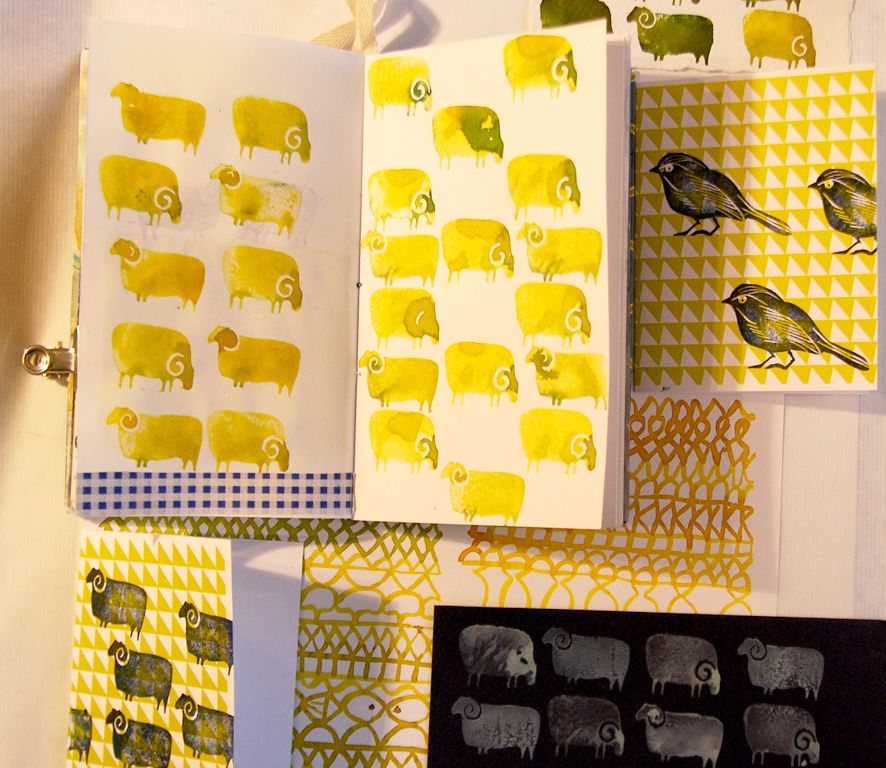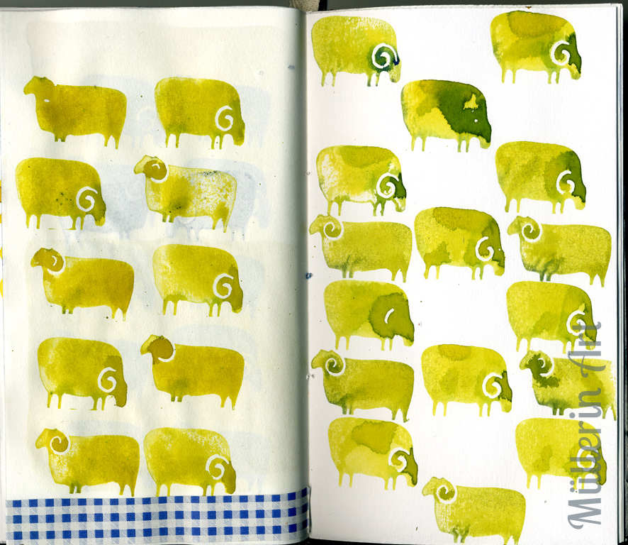 1. Also deine Werke sind auch heute wieder wunderbar! Die Schafe sind sehr hübsch … ja besonders auch auf Schwarz. Und die Aquarellstruktur kommt fein daher.