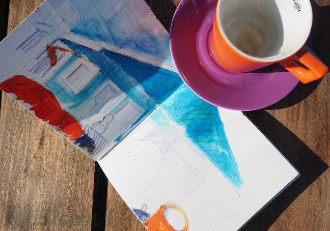 Ein paar Seiten im Skizzenbuch gefüllt, eine bei einem Kopje Koffie direkt am Strand,