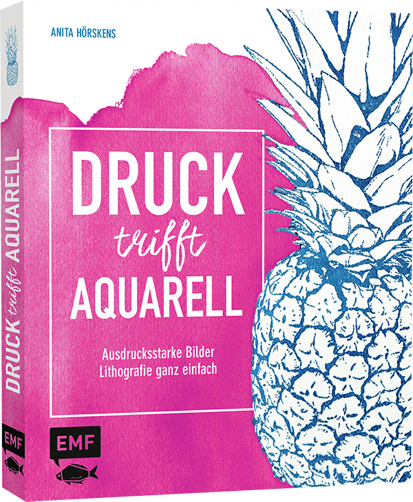 Die Feinheiten der Fischzeichnung bilden sich sehr gut ab. Wir spielten mit mehr oder weniger Farbe, mit der richtigen Konsistenz, mit mehr oder weniger Wasser, unterschiedlichen Papieren, unterschiedlichen Vorlagen.