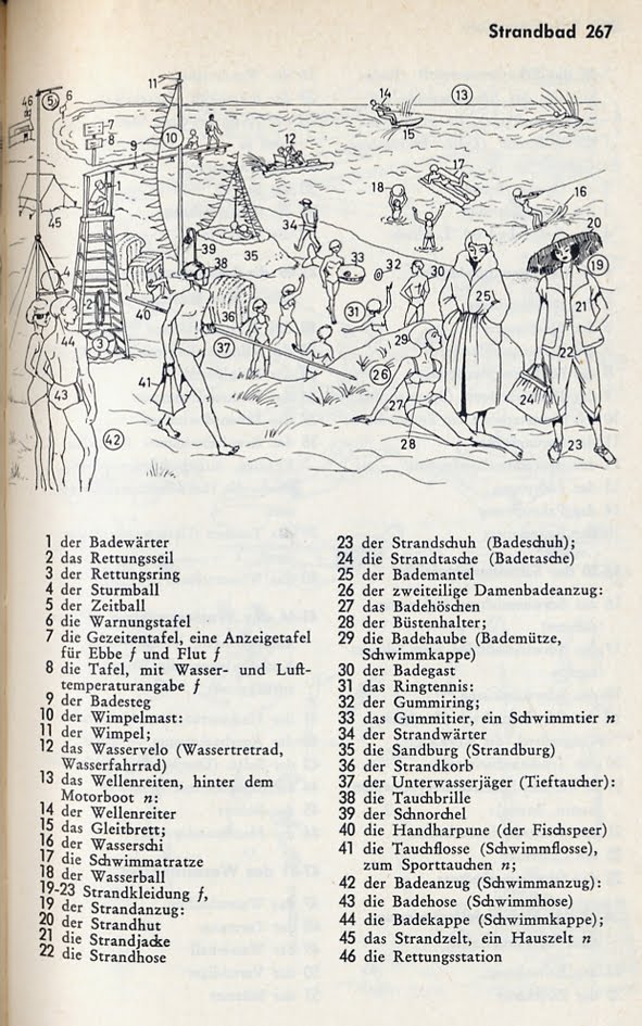 Noch viel schöner sind solche Wimmelseiten wie das Strandbad – und die Erläuterungen dazu.