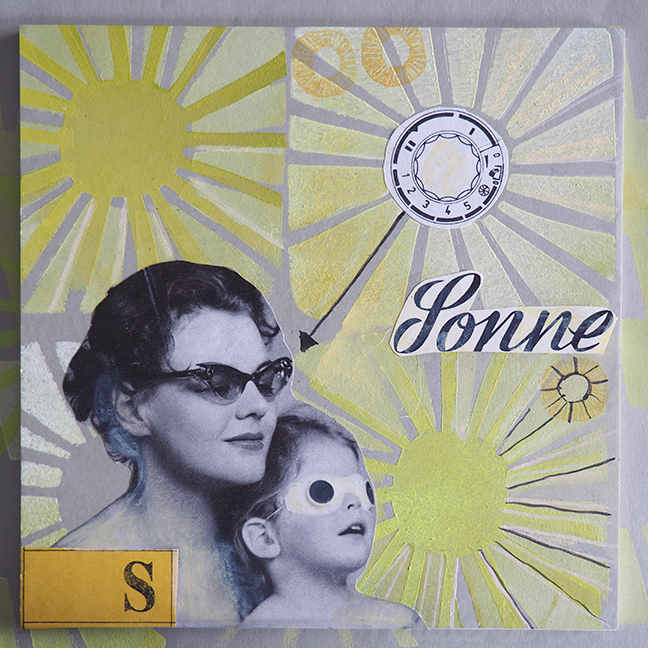 Meine zweite Collage ist auch nicht mehr ganz neu, hatte aber schon vor ca. 7 Jahren genau das 15fünfzehn-Format. Jetzt habe ich sie durch ein paar Schnipsel von akutellen Sonnenmustern ergänzt.