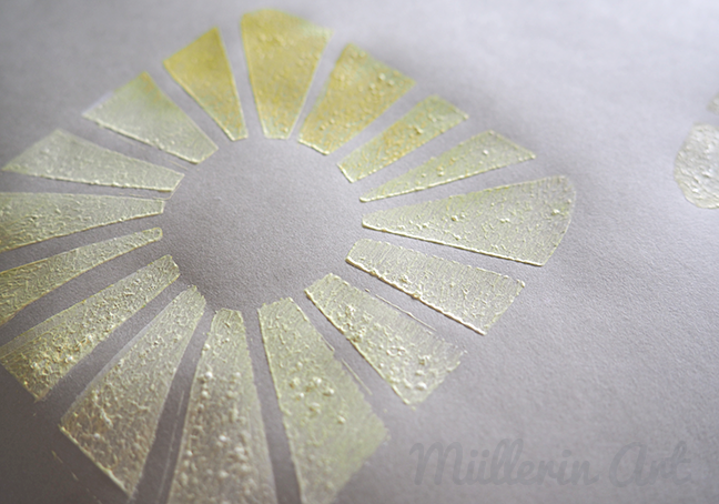 The yellow paint flowing into the white against the gray background creates a very soft glow. A nice contrast to the usual bright images of the sun.
