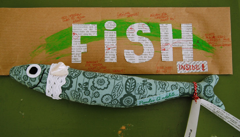 Die Freitags-Fische sind auf Reisen gegangen. Fischtausch-Päckchen schwammen in dieser Woche durch Deutschland. Paula Q. und ich haben uns gegeseitig mit unseren Fischigkeiten beschenkt. Richtig glücklich bin ich über mein süsses Spröttchen von der Schwäbischen Alb, das sowas von liebevoll verpackt in meinem Briefkasten landete: