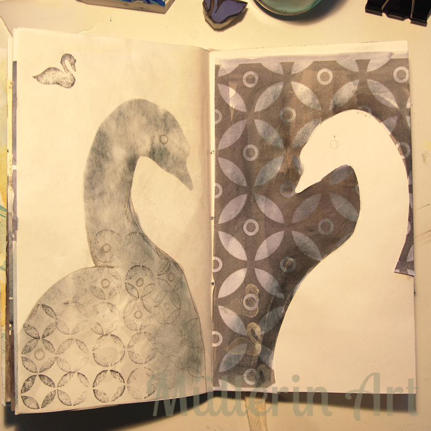 Großartig Deine Schwanenimpressionen ! Dein Stempelexperiment/Stempel Hintergrund finde ich große Klasse !